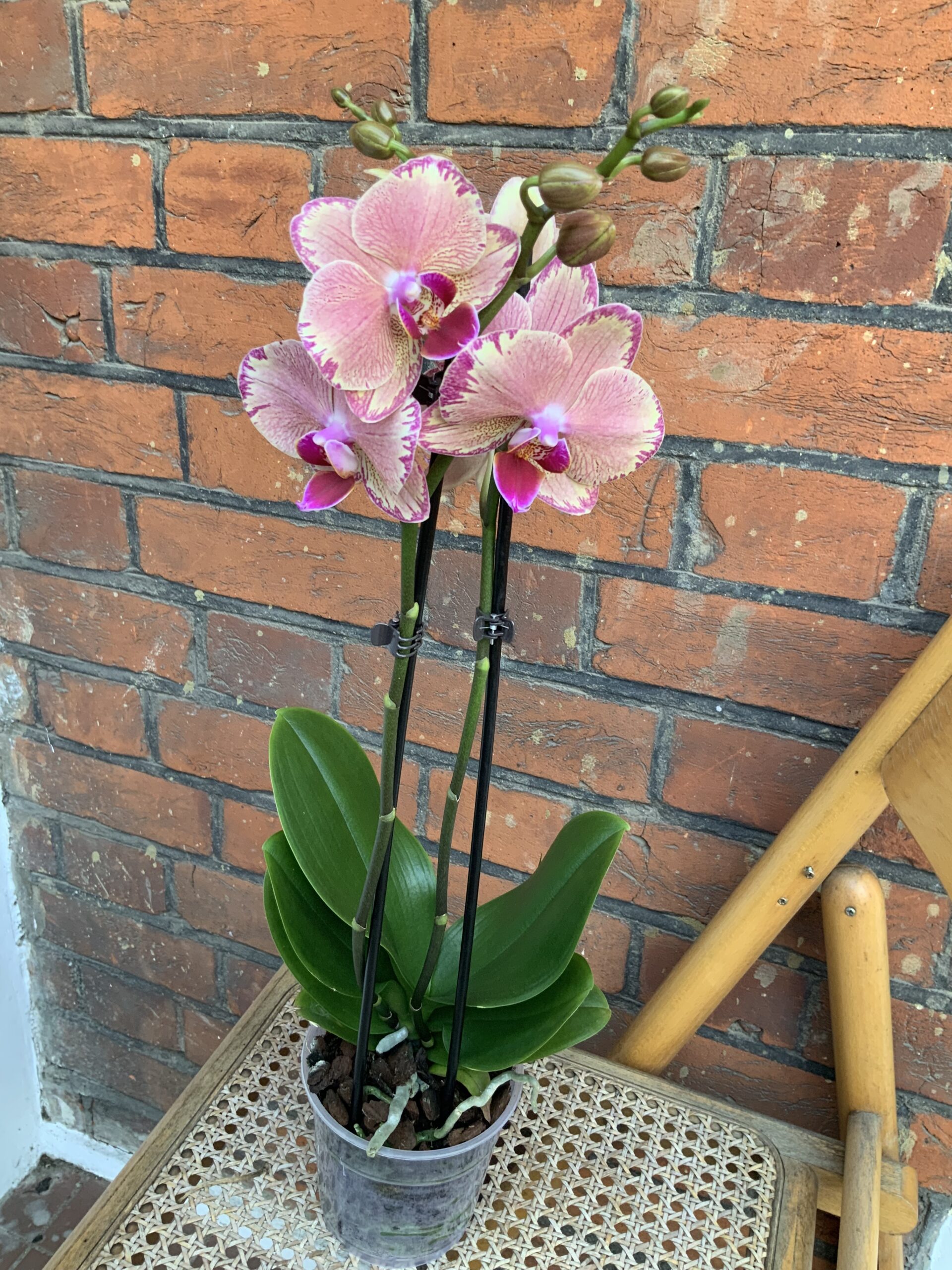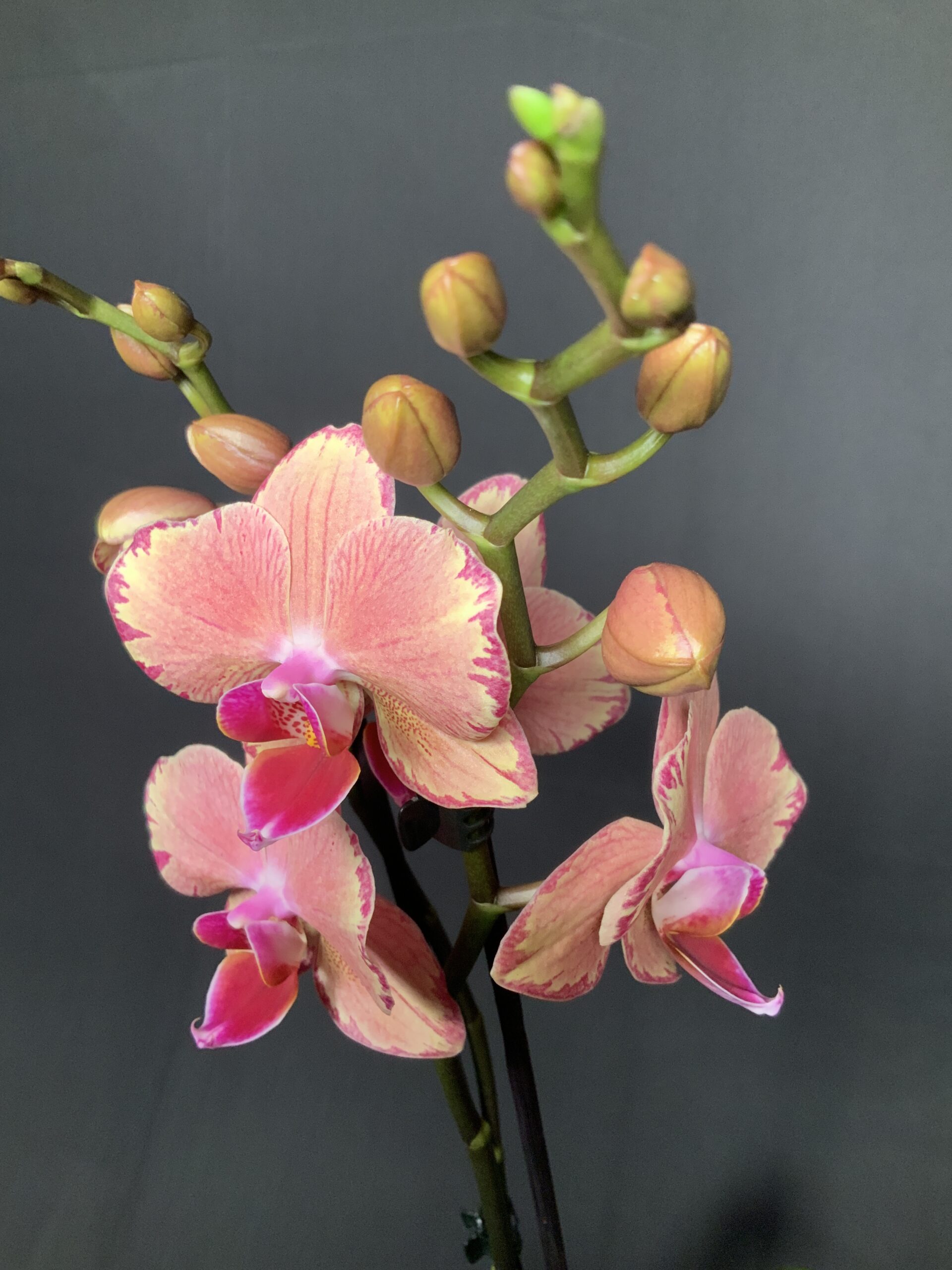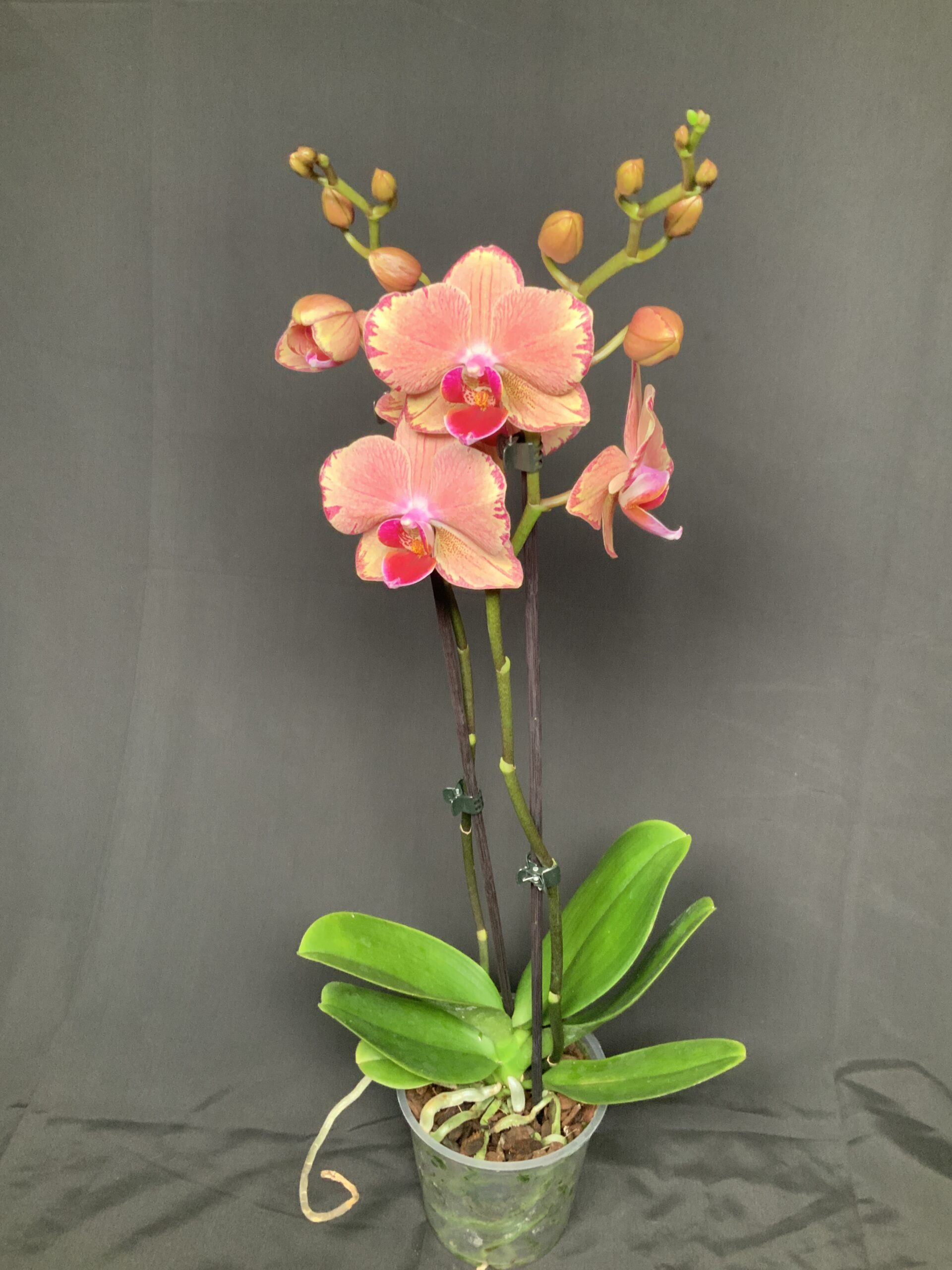 Phalaenopsis is the most famous and commercially available type of orchid, loved for its gracefully curved flower heads that lift up wide, round flowers. Phalaenopsis is an orchid icon. In addition to the popular large-flowered hybrids, the genus includes many exotic species that are naturally found in East Asia and the Pacific islands. Phalaenopsis species and hybrids have long-lasting flowers, but the fragrance is often limited to species from certain subgroups and closely related hybrids. Phalaenopsis is best grown in medium to high temperatures and low to medium light levels.